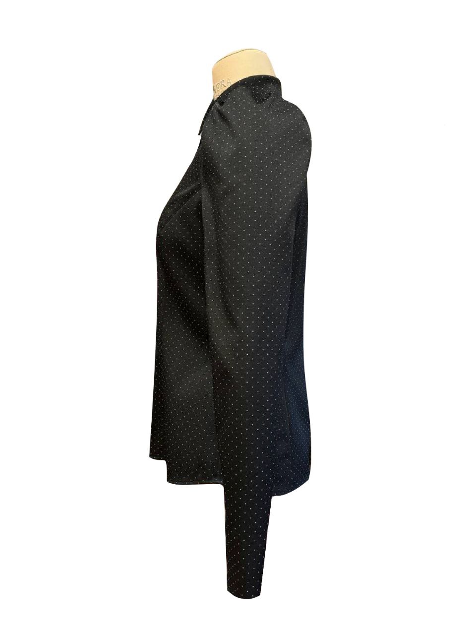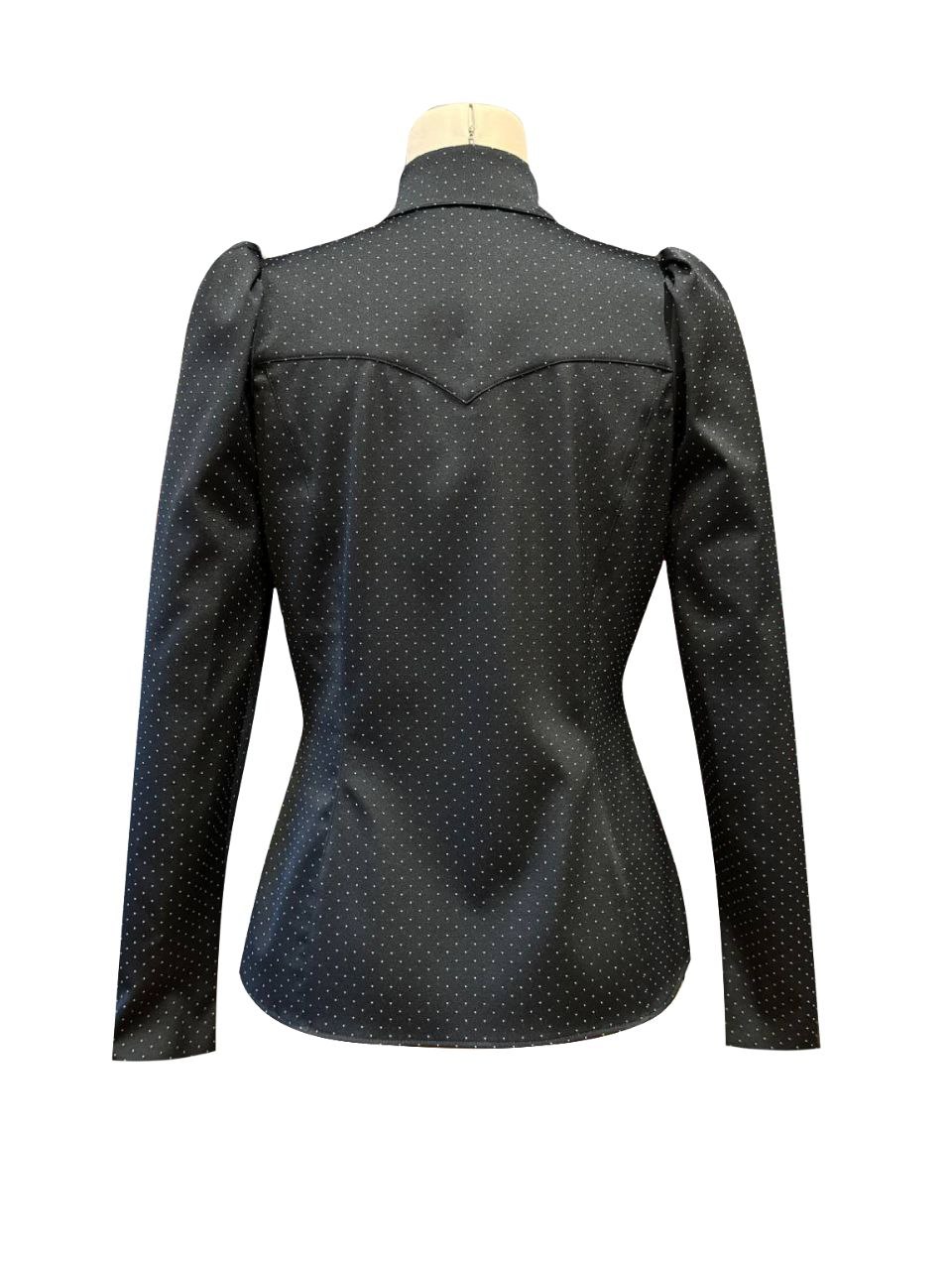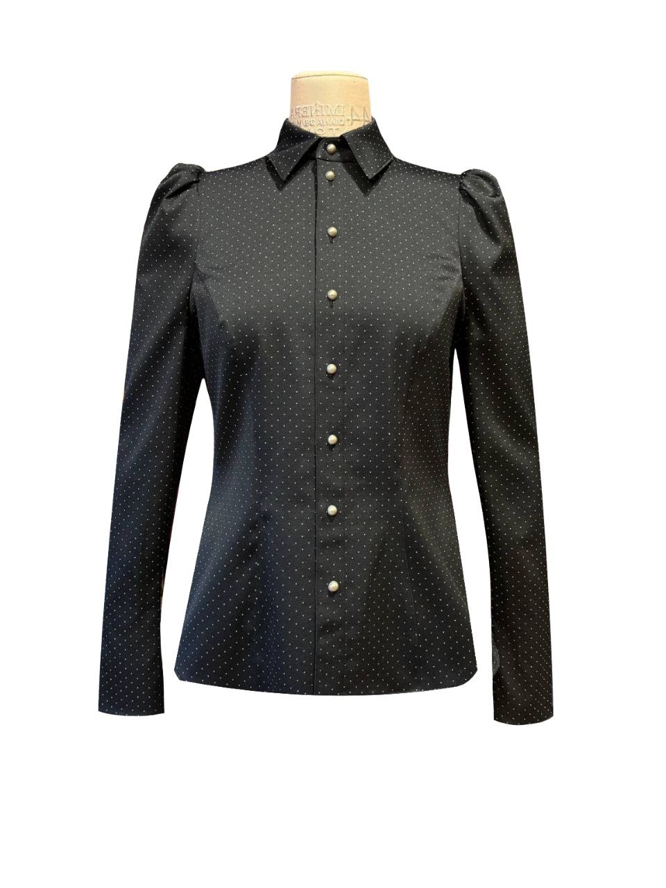 Блуза приталенная из хлопкового жаккарда. Спинка блузы с фигурной кокеткой. Рукав длинный без застежки. Застежка блузы планка на пуговицах, воротник отложной.