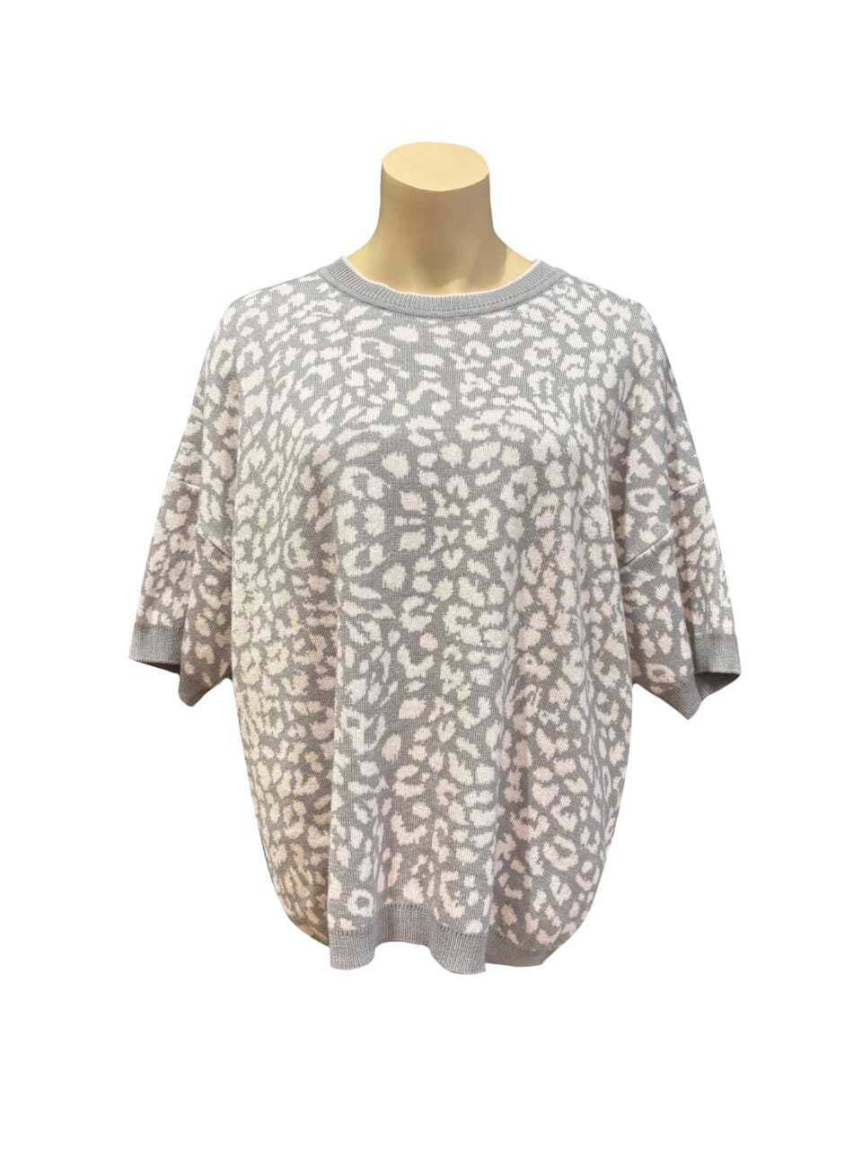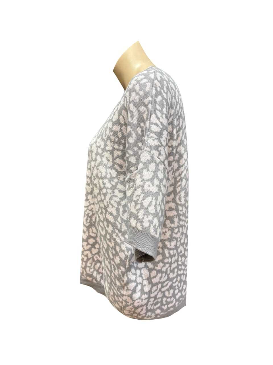Джемпер вязанный из хлопка с трендовым леопардовым принтом. Крой джемпера свободный со спущенным рукавом. Мягкий цвет "розовый кварц" добавляет образу свежести и легкости.