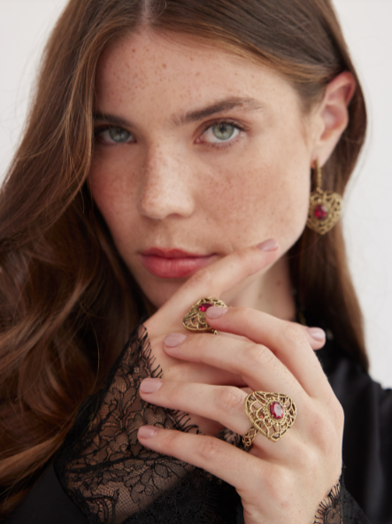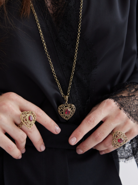 Ажурное кольцо ручной работы AMORE ETERNO. Итальянский дизайн. Вечная любовь - центральный элемент в форме овала цвета RUBY PIGEON’s BLOOD RED символизирует бьющееся сердце. Узоры декора на самом сердце символизируют собой витиеватость наших мыслей и действий в состоянии любви.