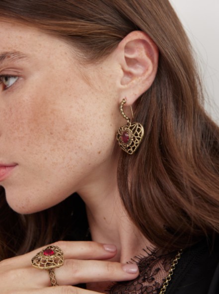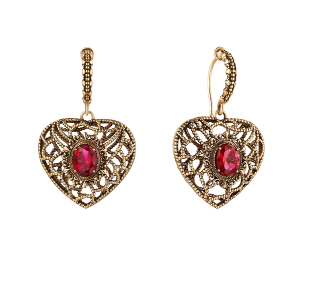 Ажурные серьги ручной работы AMORE ETERNO. Итальянский дизайн. Вечная любовь - центральный элемент в форме овала цвета RUBY PIGEON’s BLOOD RED символизирует бьющееся сердце. Узоры декора на самом сердце символизируют собой витиеватость наших мыслей и действий в состоянии любви.