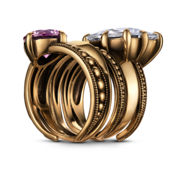 Состав: Brass (латунь) с гальваническим покрытием - нанокерамика, патинирование, фианиты. Цвет: античное золото, бесцветный, розовый. Размер: универсальный, возможность расставить шинку в дипазаоне с 16 до 19 RUS. Вес 15,9 гр.