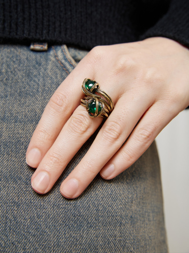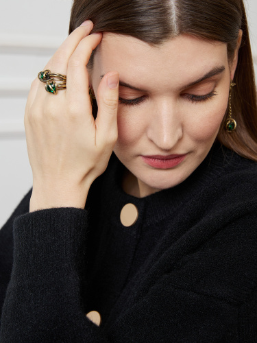 Состав: Brass (латунь), гальваническое покрытие, патинирование, фианит. Представлено со вставками в 5-ти цветах: черный, бесцветный, лавандовый, розовый, зеленый. Размер: универсальный, возможность расставить шинку с 16-19 RUS, вес 4,8 гр.