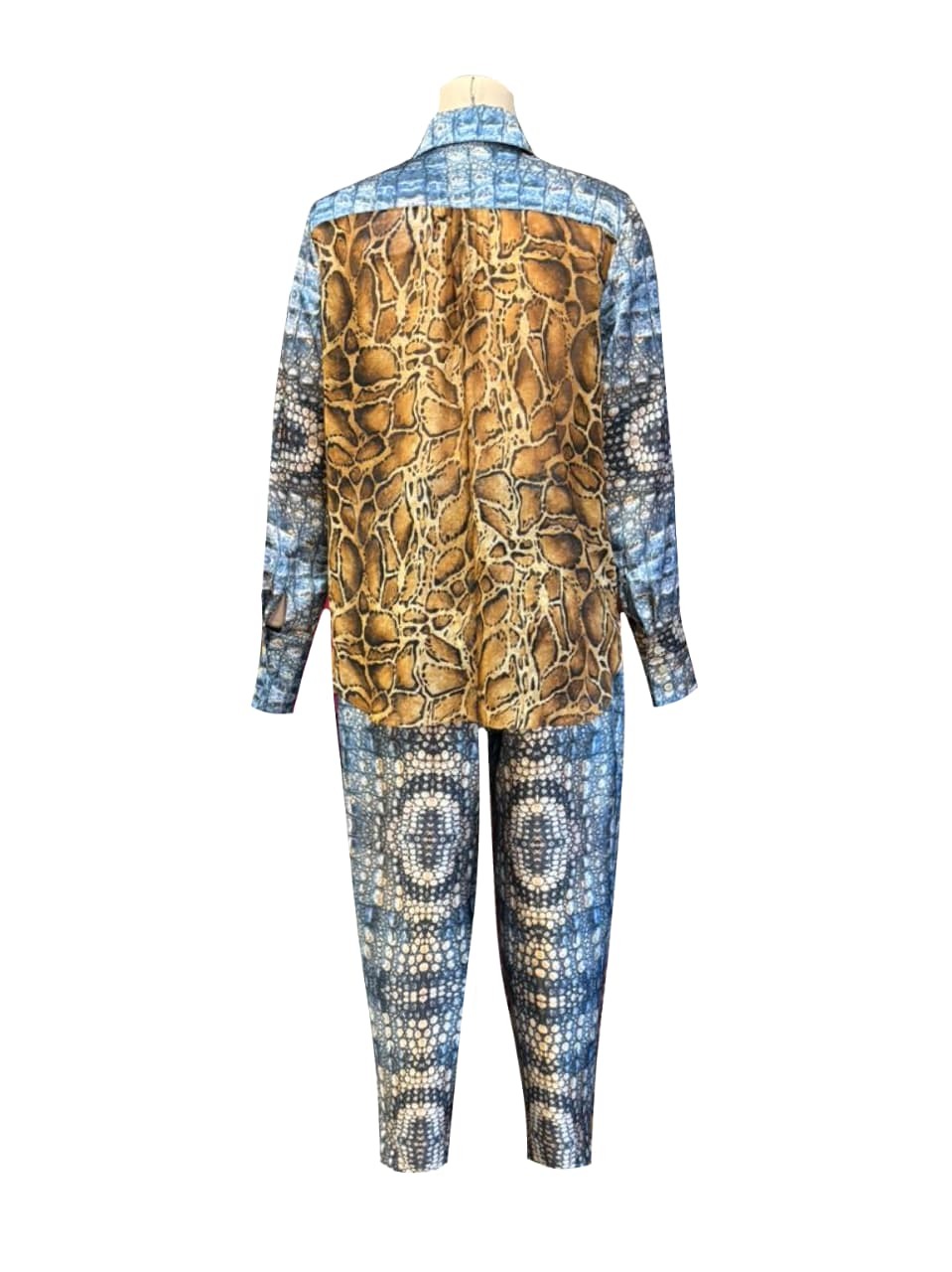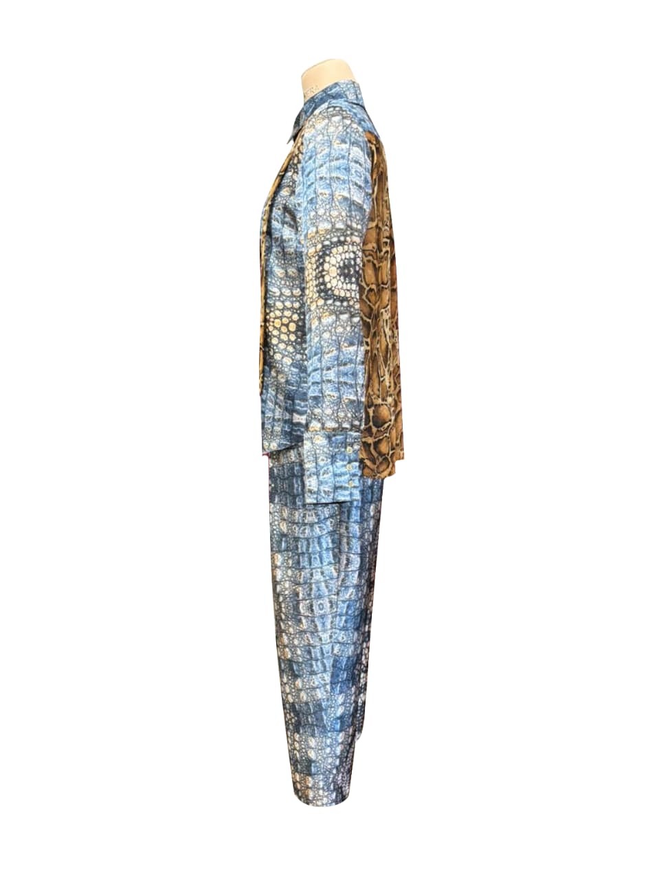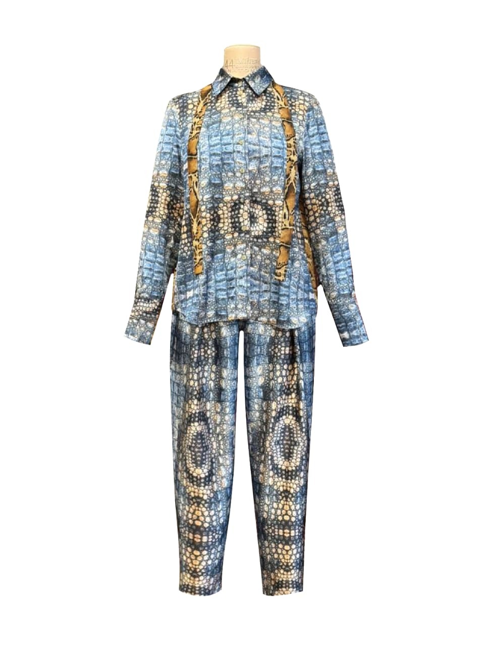 Костюм из блузы и брюк бананов с принтом СИНИЙ КРОКОДИЛ из лимитированной коллекции "МУТАБОР II".