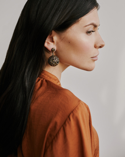 Состав: Brass (латунь) c гальваническим покрытием и патинированием, фианиты. Застежка - пуссет Цвет: античное золото, прозрачный. Размер: высота 4,5 см, диаметр 3 см, вес 16 грамм за пару.