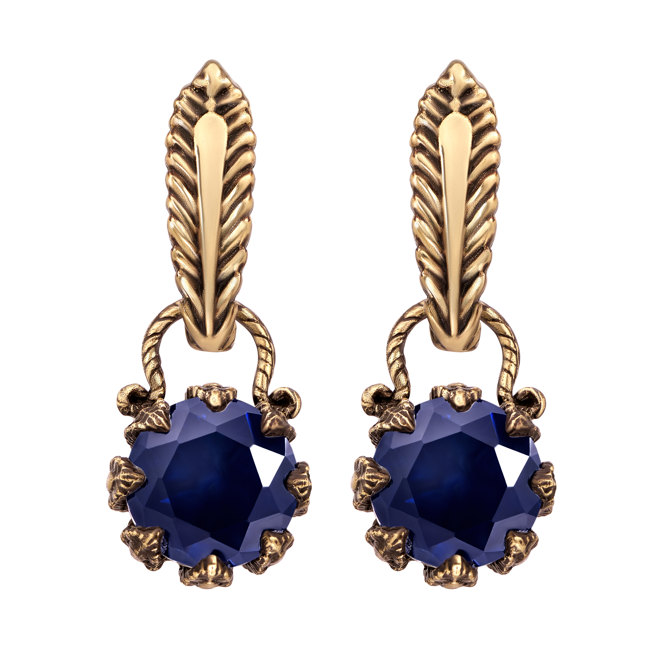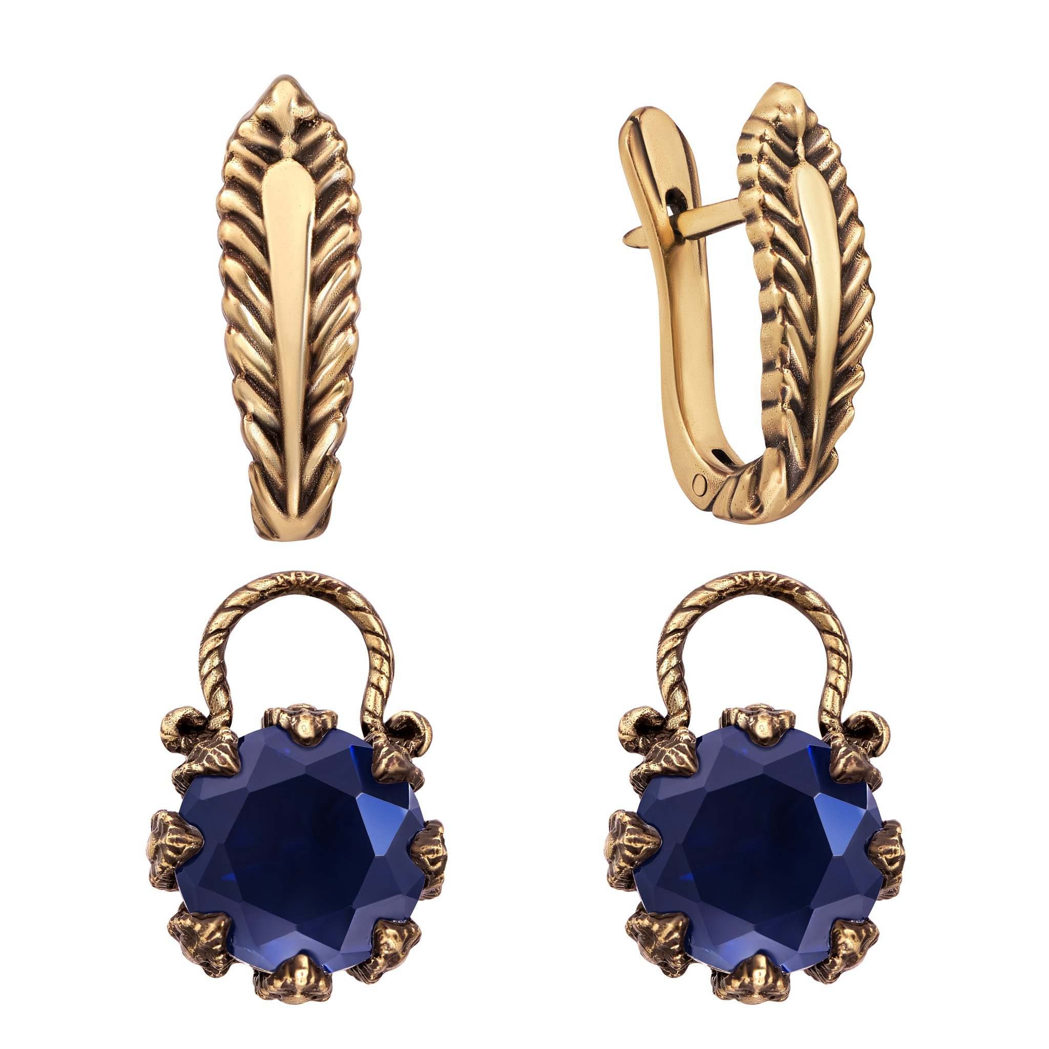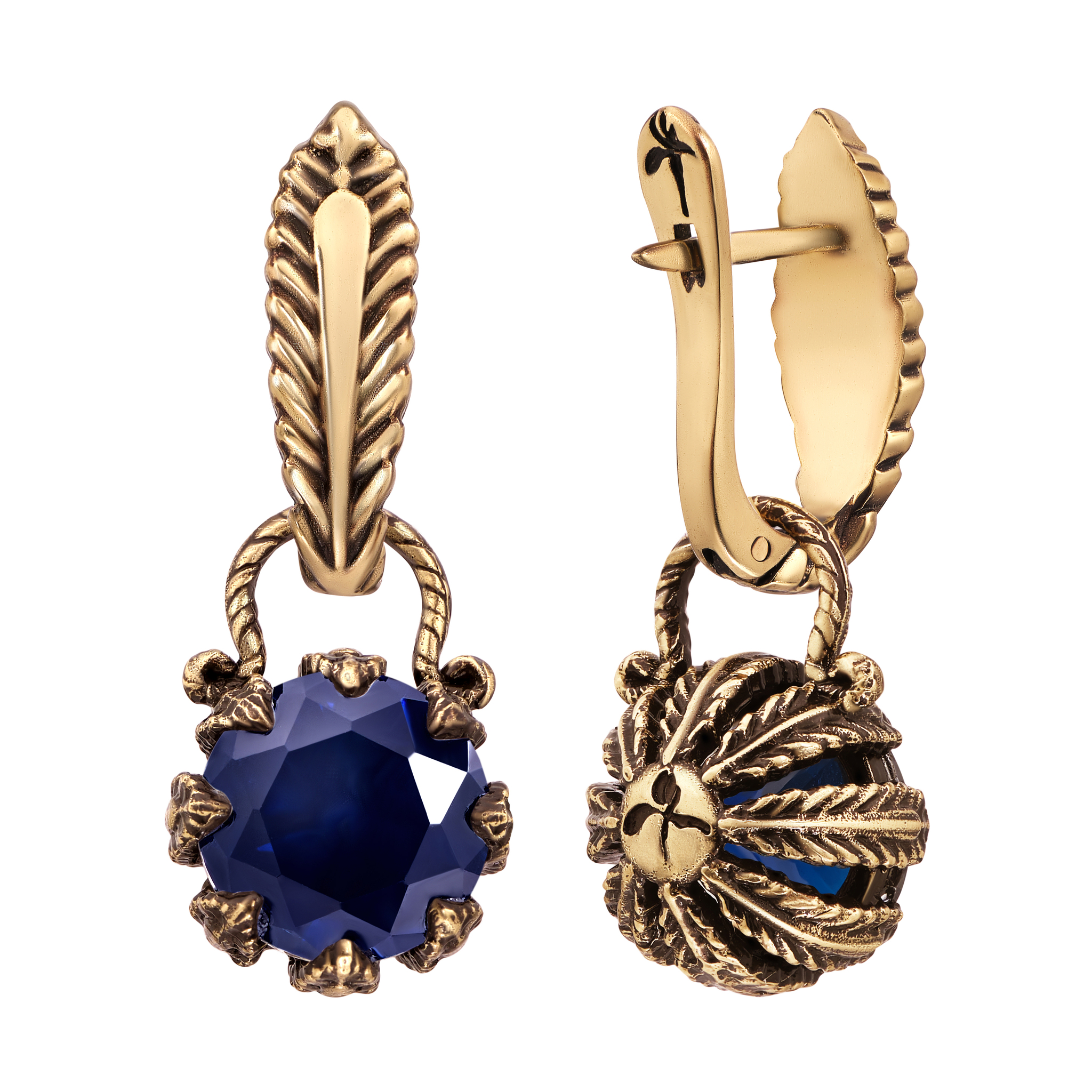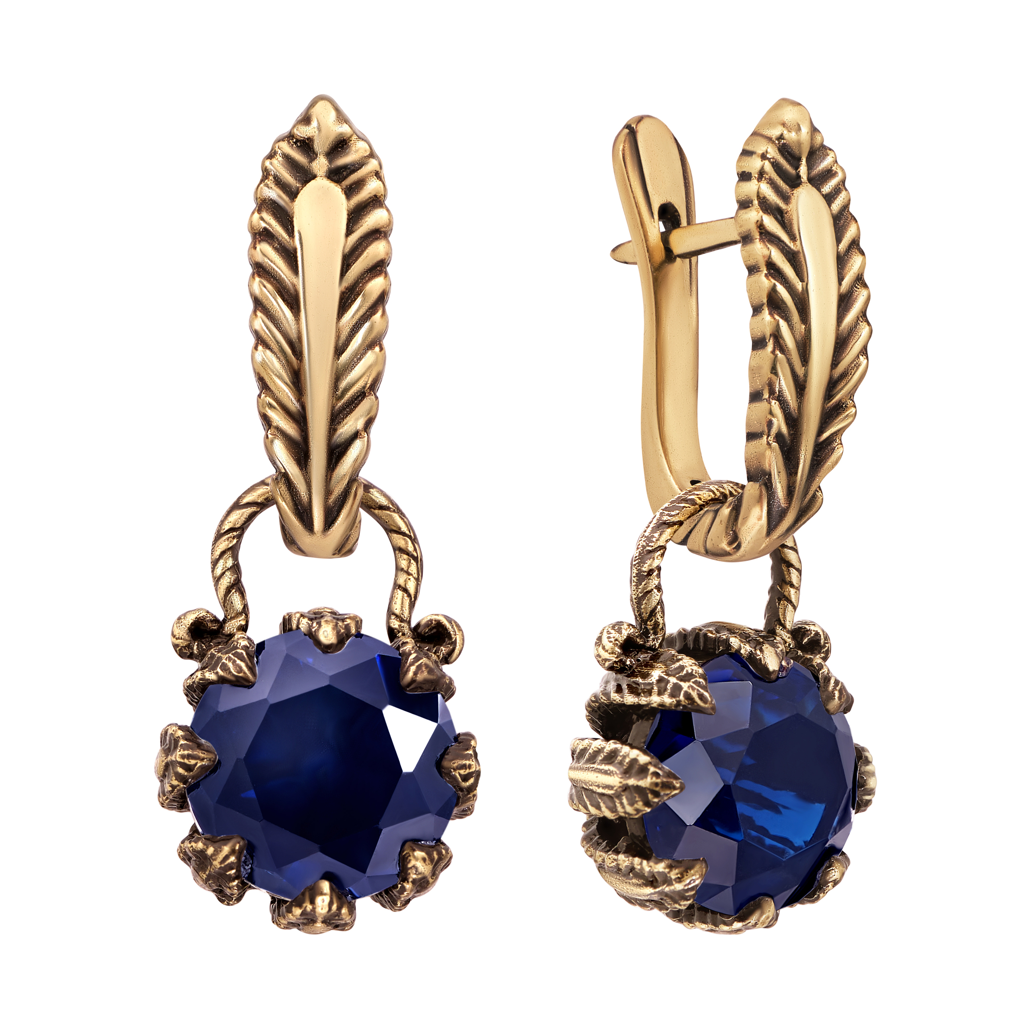 Состав: Brass (латунь) с гальваническим покрытием, патинирование, фианиты. Цвет: античное золото, синий. Размер: высота 3 см, застежка - английский замок. Вес 8,8 гр. за пару