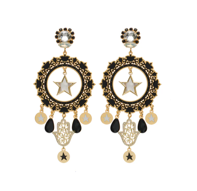 Наилегчайшие яркие серьги "Цыганский черный" изготовлены из гипоаллергенной позолоченной латуни, покрыты тонированной эмалью, украшены подвесками и инкрустированы кристаллами.