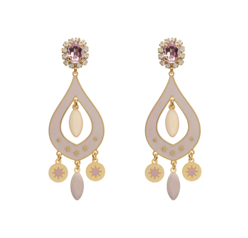 Наилегчайшие яркие серьги "Цыганский миндаль" изготовлены из гипоаллергенной позолоченной латуни, покрыты тонированной эмалью, украшены подвесками и инкрустированы кристаллами.