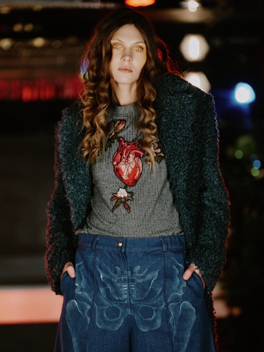 Подчеркивает фигуру за счет приталенного силуэта и имеет небольшое расширение к низу. Воротник английский, прорезные карманы с клапаном на переде. Плечи четко очерчены подплечниками. Для свободного движения на спинке высокая шлица. Застежка однобортная на две кнопки. Подкладка насыщенного цвета бордо.