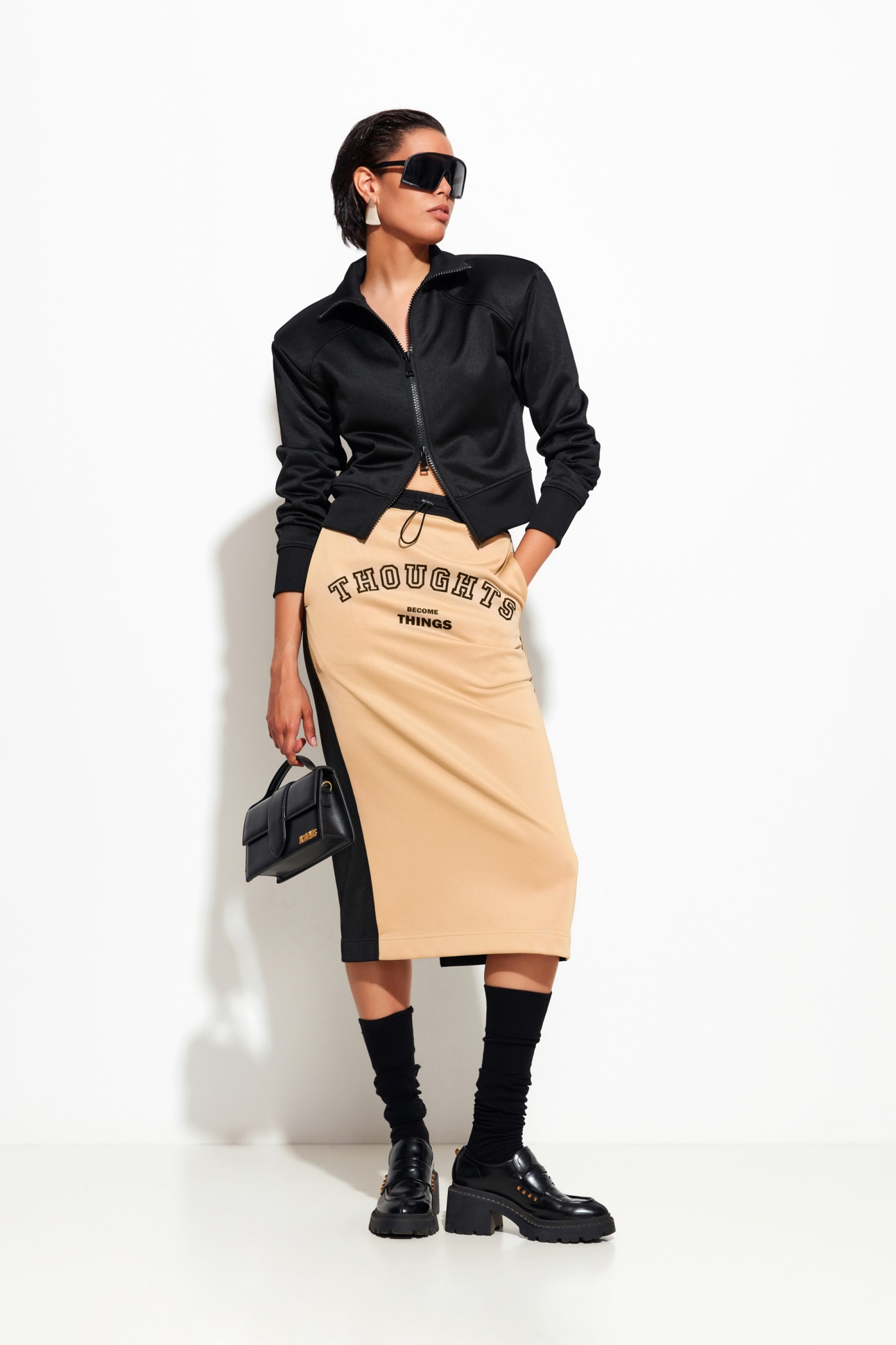 Юбка Lakbi отлично смотрится со сдержанными верхними изделиями — однотонные блузы и свитеры, чтобы акцентировать внимание на юбке.